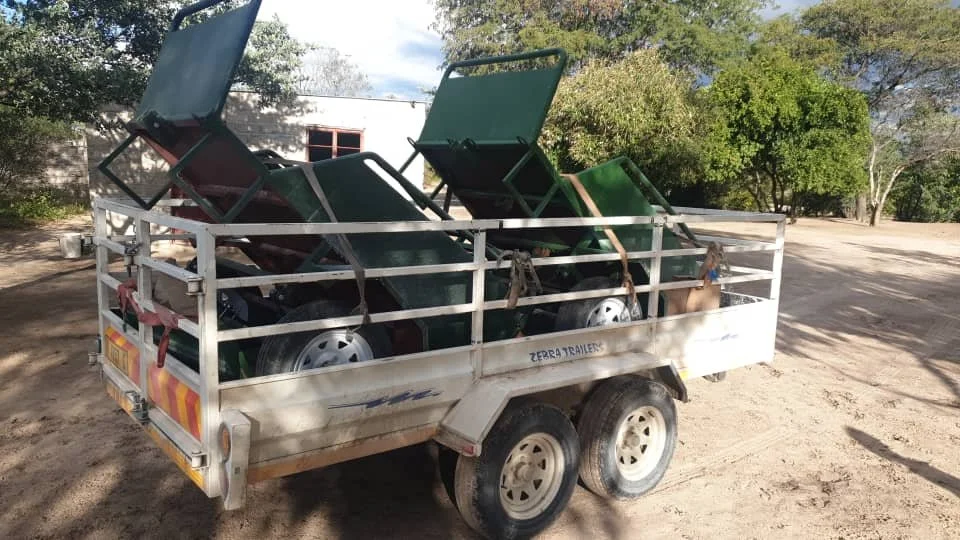 One of the Foundation’s main aims is to help the Ju|’hoansi to be economically independent. Donkey ‘cars’ or ‘carts’ are a very green solution. The cars are low maintenance and easily fixed and serviced. The donkeys are well-adapted to eating the local grasses. They quickly adapt to village life, living free-range during the day eating grasses near the village and return of their own accord in the evening to the safety of the village hearth.