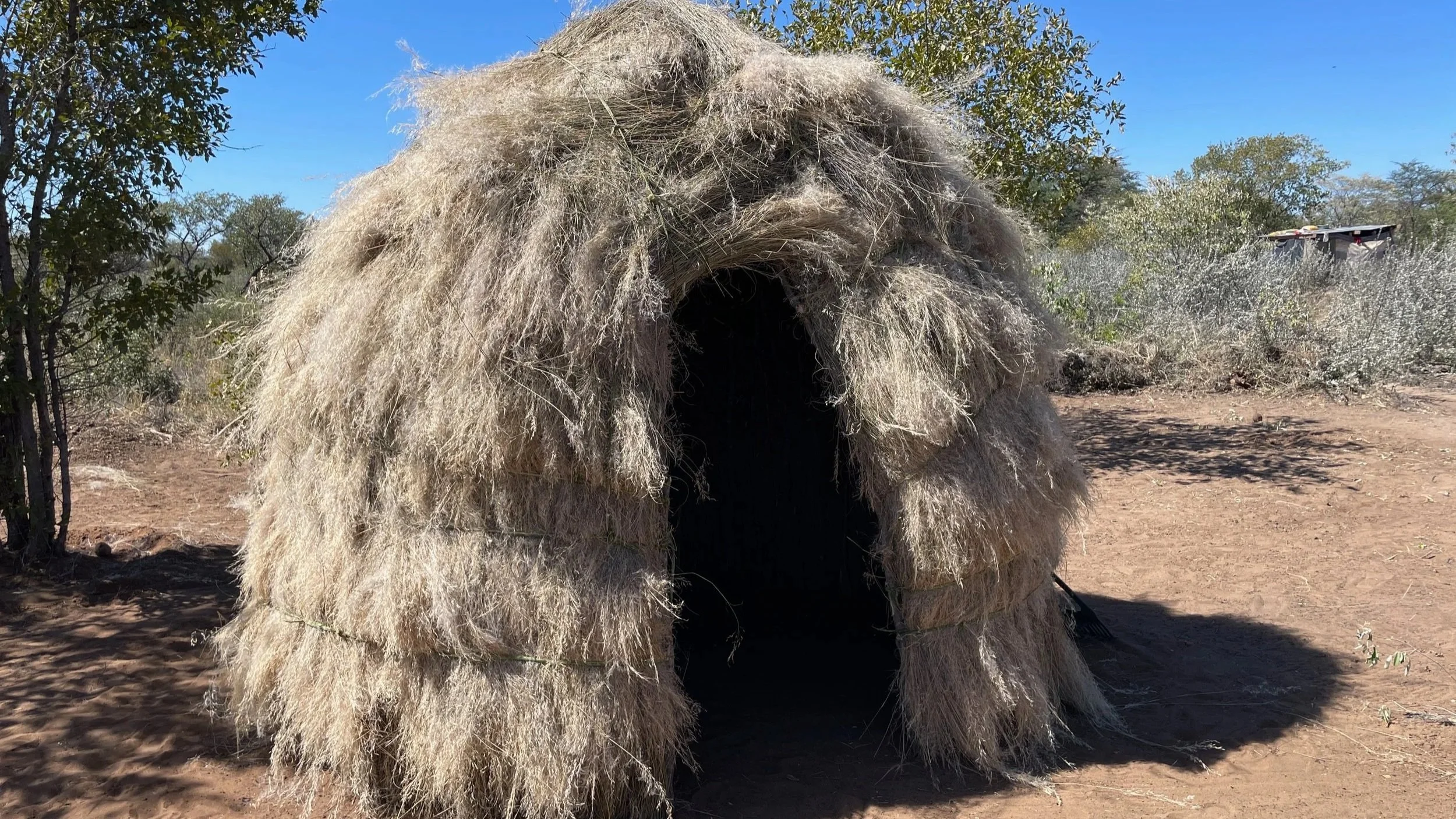 The hut kit prototype, being installed in November, uses low-cost, bent steel rebar, that is resistant to termites, and a simple fabricated steel roof circle and door lintel, that ties the structure. !Amache has designed a double thatch system using local grasses to cover the hut. The aim is to support the Ju|’hoansi in living closer to their traditional way but with more space, convenience, longevity and a character that accords with their ancestral heritage.